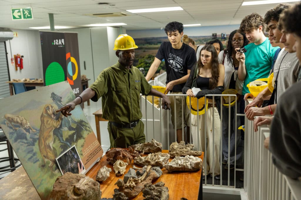 We then took a long drive out to Sterkfontein Caves, a World Heritage Site known as the Cradle of Humankind.This is one of the most important paleo/anthropological sites in the world, where fossils of early human ancestors have been discovered. Our tour guide, Sipho, was a trained fossil technician who was excited to share his passion with us. We donned hard hats, descended stairs, ducked through narrow passages, and stood in large limestone chambers. Along the way, we learned about how fossils were formed and uncovered over time. Standing in a place where some of the earliest evidence of humanity was found reminded us that all humans share a common origin, a powerful message as we continue to reflect on South Africa’s history and its ongoing journey toward justice and equality.