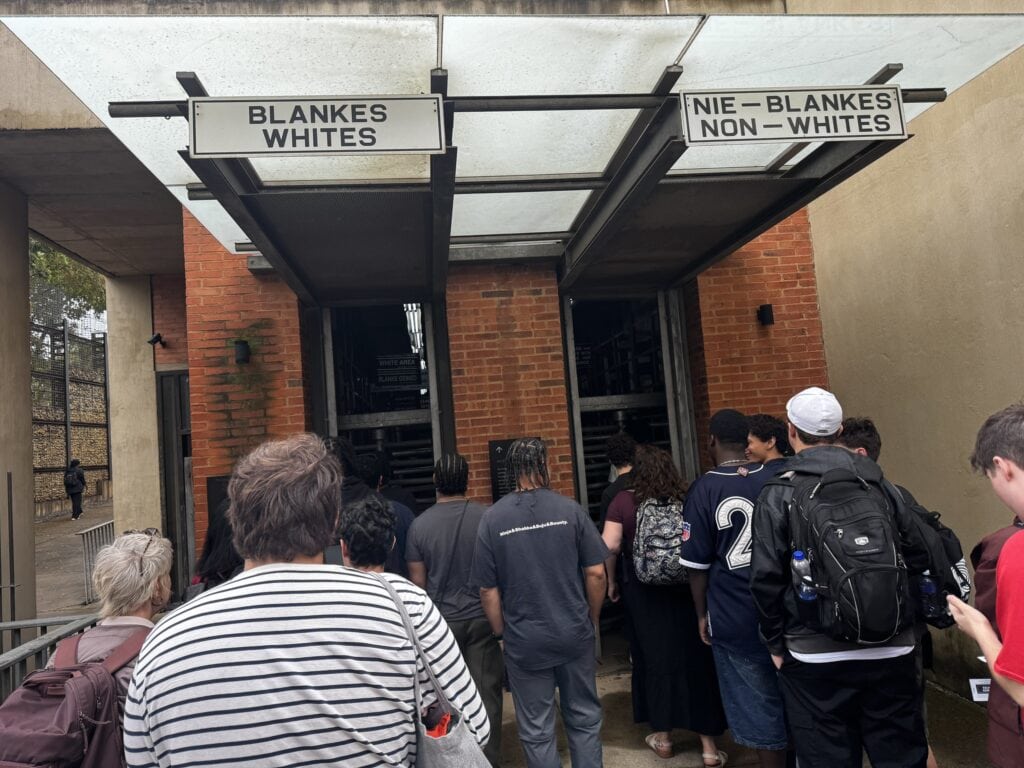 The first stop was the Apartheid Museum. The immersive experience of this museum begins the moment you receive your entry ticket, which is marked either White or Non-White. The tickets were handed out randomly, but If your ticket said “Non-White,” you had to enter a smaller exhibit and take the stairs. Once inside the museum, there was so much to see. In one direction, there was a deep dive into the life, activism, imprisonment, and presidency of Nelson Mandela. In the other direction, we explored the rise and fall of Apartheid in South Africa.