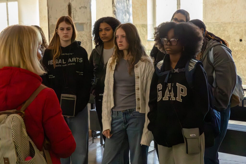 The next day began with a guided tour of the Dachau Memorial Site. Established in 1933, Dachau served as the model for all subsequent concentration camps and imprisoned more than 200,000 people over its 23-year existence. Walking through the entrance gate, under the infamous slogan “Arbeit macht frei” (“Work sets you free”) to the barracks, memorials, and crematorium offered a sobering look at the machinery of Nazi terror and the lives affected by it. Our students walked the grounds with the seriousness and respect this history demands. The students moved through each experience with thoughtfulness and care. Afterward, we shared some reflection through Silence. Some students who identify as Jewish stayed to recite the Mourner’s Kaddish, a traditional Jewish prayer of mourning. I was moved by how our students process this experience, demonstrating the ability to sit with difficulty, ask hard questions, and feel the weight of history without turning away from it.